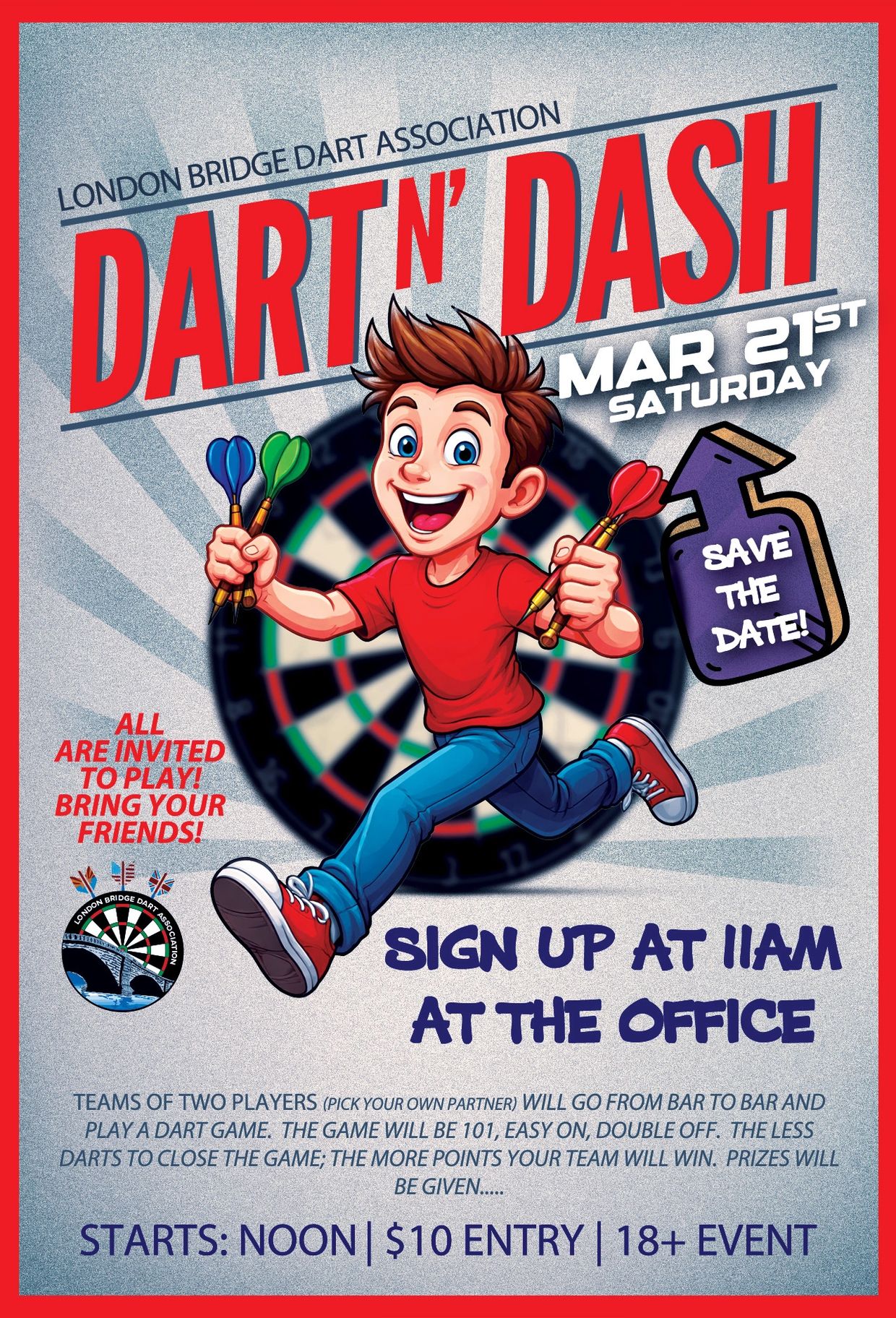 This is a fun event, so bring your friends! You do not have to be a London Bridge Dart Association member to play!